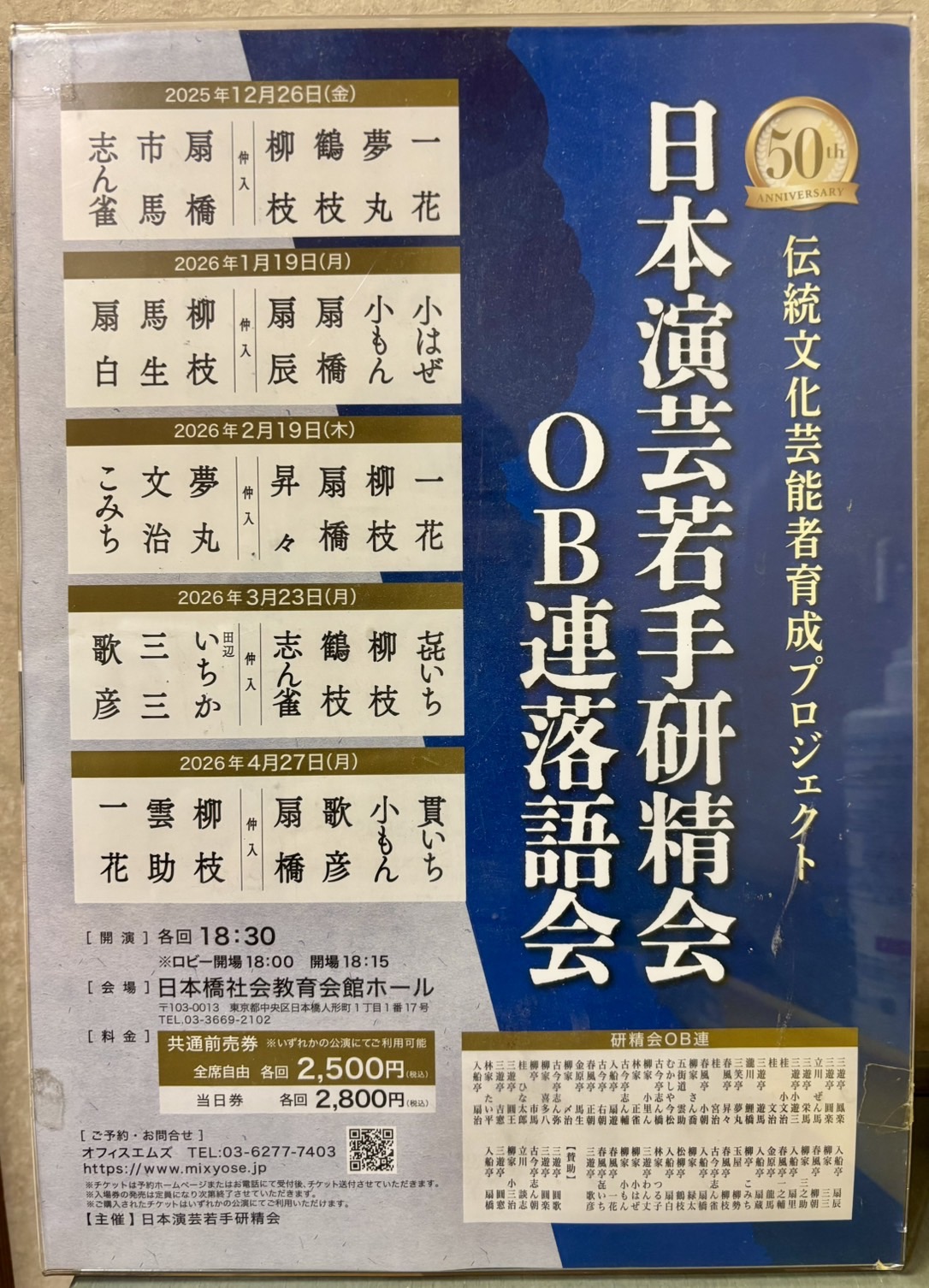 | 出演者 | 入船亭扇白 金原亭馬生 春風亭柳枝 入船亭扇辰 入船亭扇橋 柳家小もん 柳家小はぜ 他 |